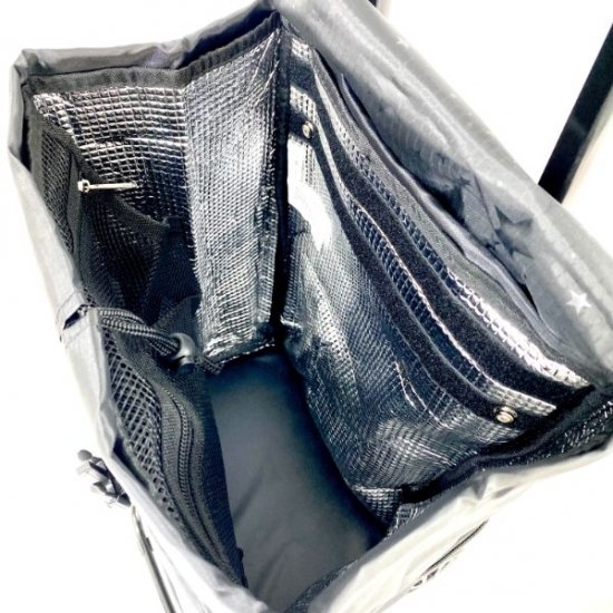 メッシュポケットがあるので保冷材も入れられますし、保護ネットを使用すれば潰れやすいものも安心して運べます。