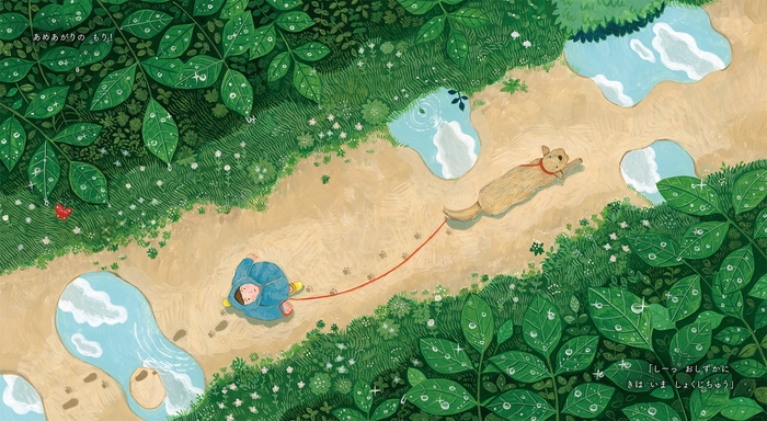 語り手の犬は、生まれたばかりの一人の男の子にそっとささやきます。同じ時を過ごすふたりは、男の子の成長とともに広がっていく世界を分かちあいます。犬が教えてくれるのは、この世界はこんなにも美しい、ということ。くのまりさんの圧倒的な画力で、その美しさが描かれます。