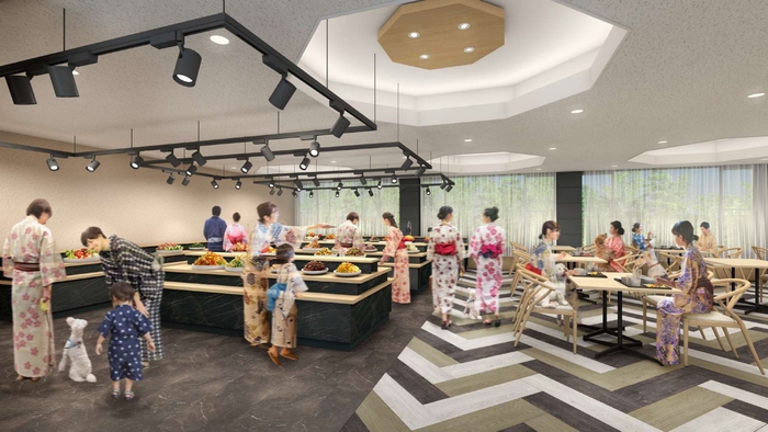 お食事の時間もわんちゃんと一緒にお過ごしいただけるよう、今回のリニューアルでレストランを改装。コンパクトながら落ち着いた造りのレストランで、大江戸温泉物語グループ自慢のバイキングをお楽しみいただけます。