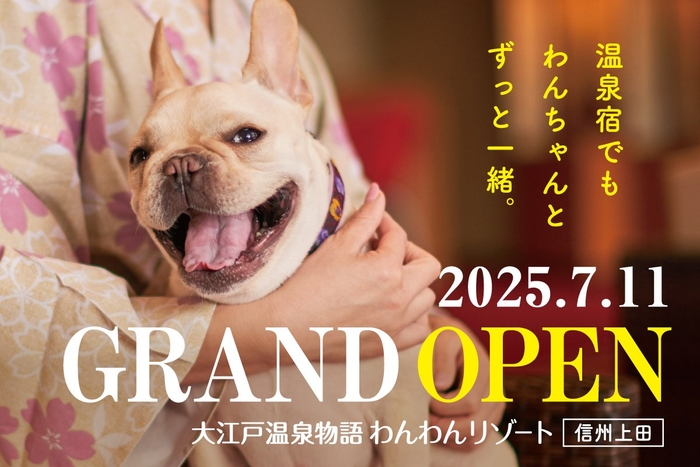 全国に70施設を展開する、大江戸温泉物語ホテルズ&リゾーツ株式会社(本社:東京都中央区銀座、代表取締役:橋本 啓太)では2025年7月11日に「大江戸温泉物語わんわんリゾート 信州上田」(以下、わんわんリゾート 信州上田)がオープンいたしました。今回のオープンにより「大江戸温泉物語わんわんリゾート」シリーズは大江戸温泉物語グループ全体で3施設となります。