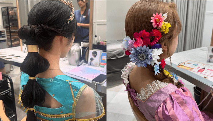 さらに舞浜イクスピアリ店では、テーマパークに映えるプリンセス風ヘアセットを実施。特別な一日をより華やかに演出します。