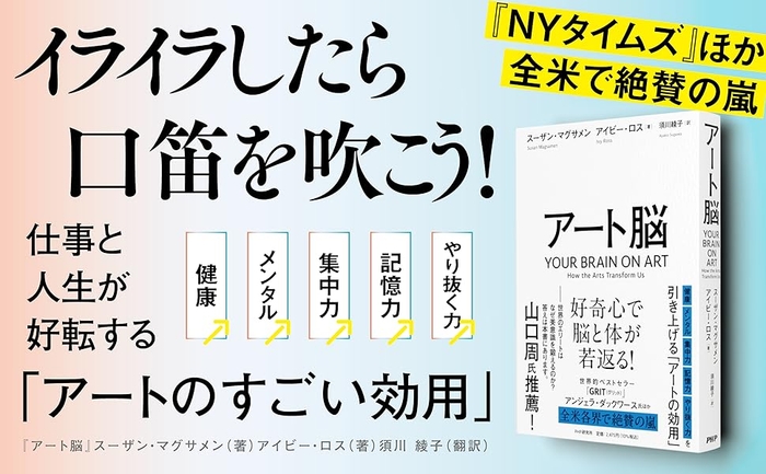 株式会社PHP研究所(京都市南区・代表取締役社長 瀬津要)は、『アート脳』(スーザン・マグサメン、アイビー・ロス 共著/税込2,475円)を、2024 年7月1日に発売します。全米でベストセラーとなった本書は、脳科学者とGoogleのデザイン責任者の二人によって、アートが私たちの身体と心の健康上の問題に働きかけ、驚くべき効果を発揮することを世界で初めて解説したものです。『NYタイムズ』で世界的ベストセラー『GRIT』の著者アンジェラ・ダックワース氏が「アートが脳と体をどう変化させるかを初めて明かした実践ガイドだ」と絶賛し、一躍話題となりました。