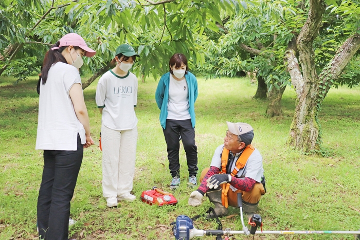 ▲社内研修の様子|剪定・草刈り・収穫作業等を体験してきました
