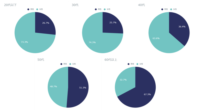 ・幅広い年齢層で使われているが、特に50代が最も多く、男性はよりアクティブに活用している