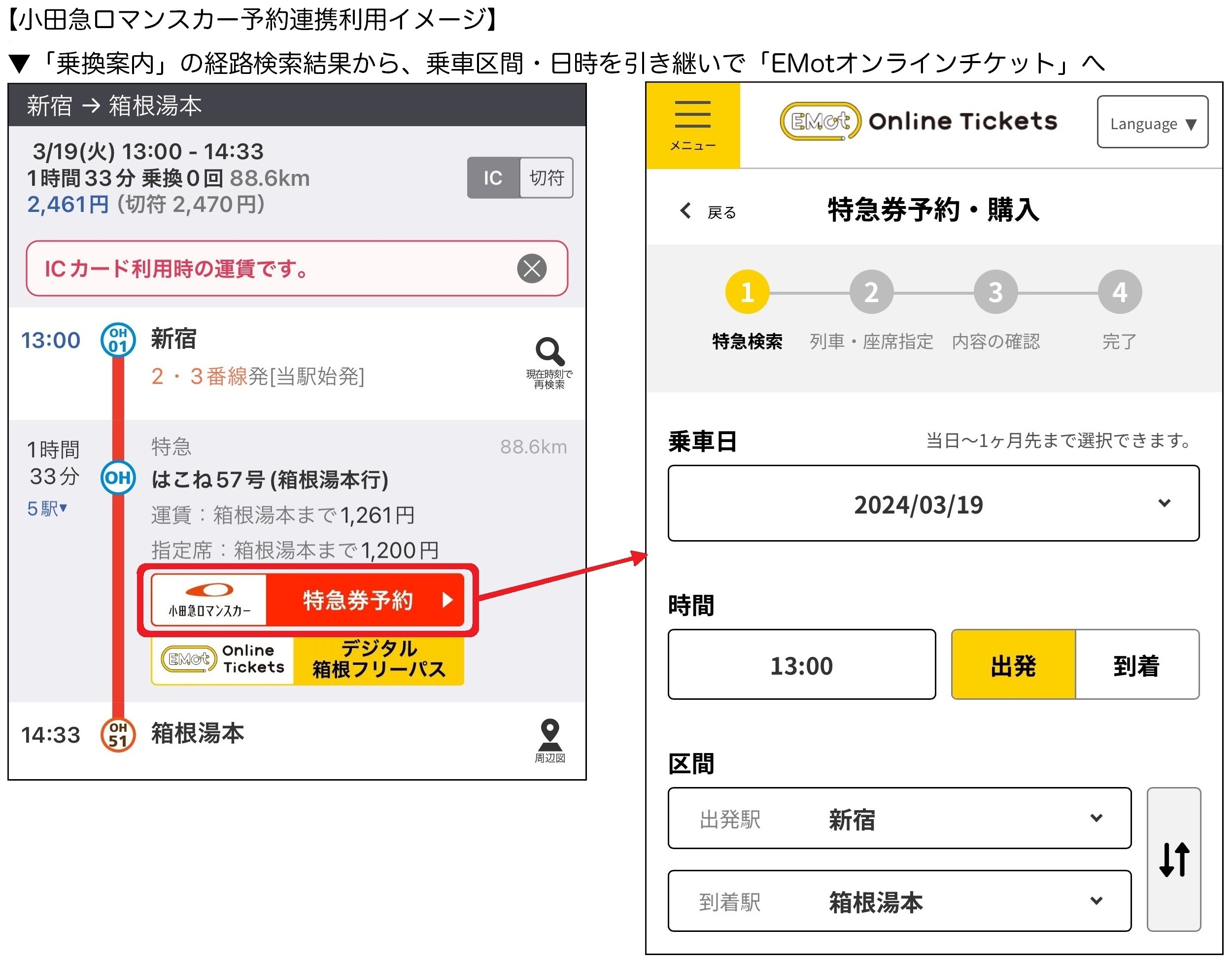 小田急ロマンスカー予約連携利用イメージ
