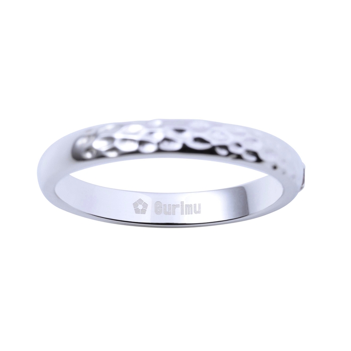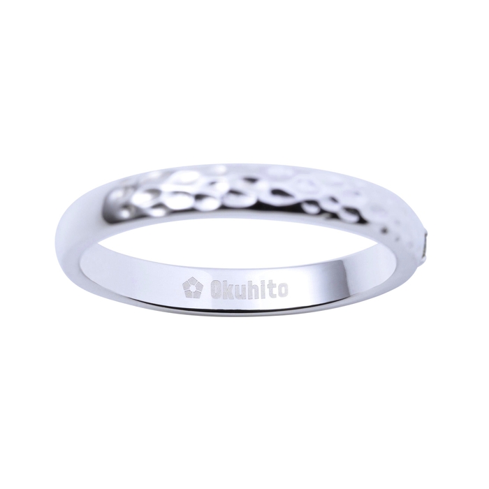 甲丸リングに槌目加工を施し、イメージカラーストーンをセット。作品の世界観をデザインに取り込みました。
