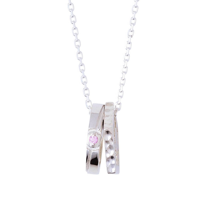もう一方は青い監獄をイメージした五角形リングに槌目加工を施した二連ネックレスです。
