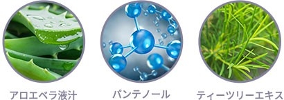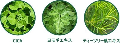 CICA(ツボクサエキス)をはじめ、ヨモギエキス、ドクダミエキス、ティーツリー葉エキス、アロエベラ葉エキスが肌荒れを防ぎ健やかな美肌へ導きます。