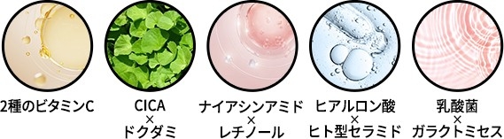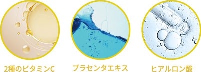 肌を引き締め、潤いを与える2種のビタミンCとプラセンタを配合。 毛穴を引き締めながら肌全体にハリ、弾力を与えます。