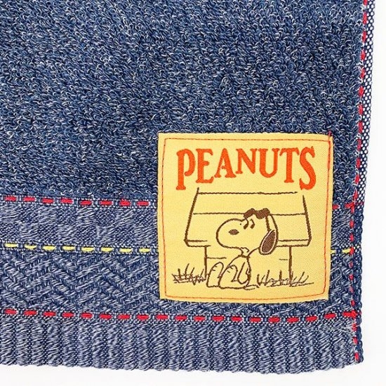 タオルなのにデニムカラー!?と驚かれるかもしれない、スヌーピーのタオルハンカチです。デニムに付いていそうなタグがより雰囲気を上げます。タオルはジャガー織りになっており、吸水力は抜群◎