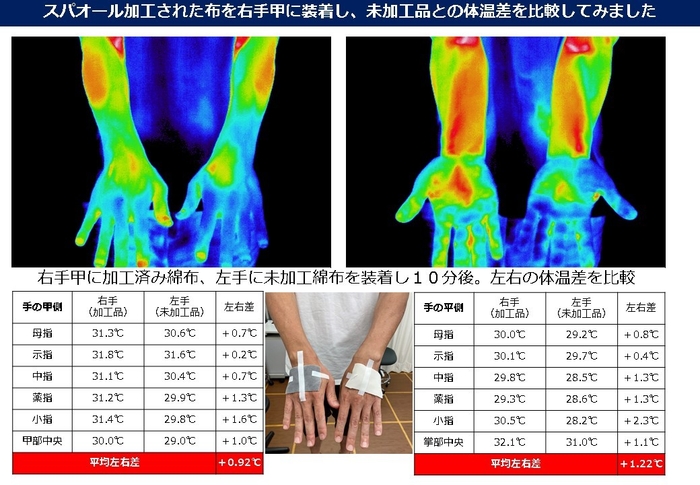 測定の結果:スパオール(R)技術が導入された布は体温が上昇することを確認。血流促進効果があることが証明されました。