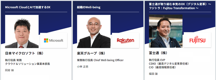 また併催セミナーでは日本マイクロソフト 常務による『ChatGPT×DX』セミナーをはじめ、サッポロ、ベネッセ、富士通など業界トップ企業の役員などが連日登壇。DX化、経営課題解決、働き方改革の最新事例を学べます。