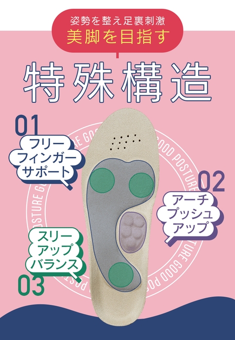 ■歩きながら簡単に美姿勢・美脚を目指す『スリムアップインソール』3つの特殊構造
