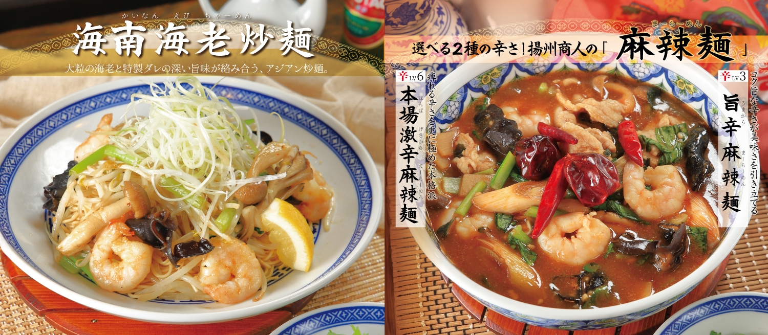 【中国ラーメン揚州商人】秋限定メニュー登場! 「海南海老炒麺」と、選べる2種の辛さの「麻辣麺」が 9/16より首都圏38店舗で期間限定で販売開始