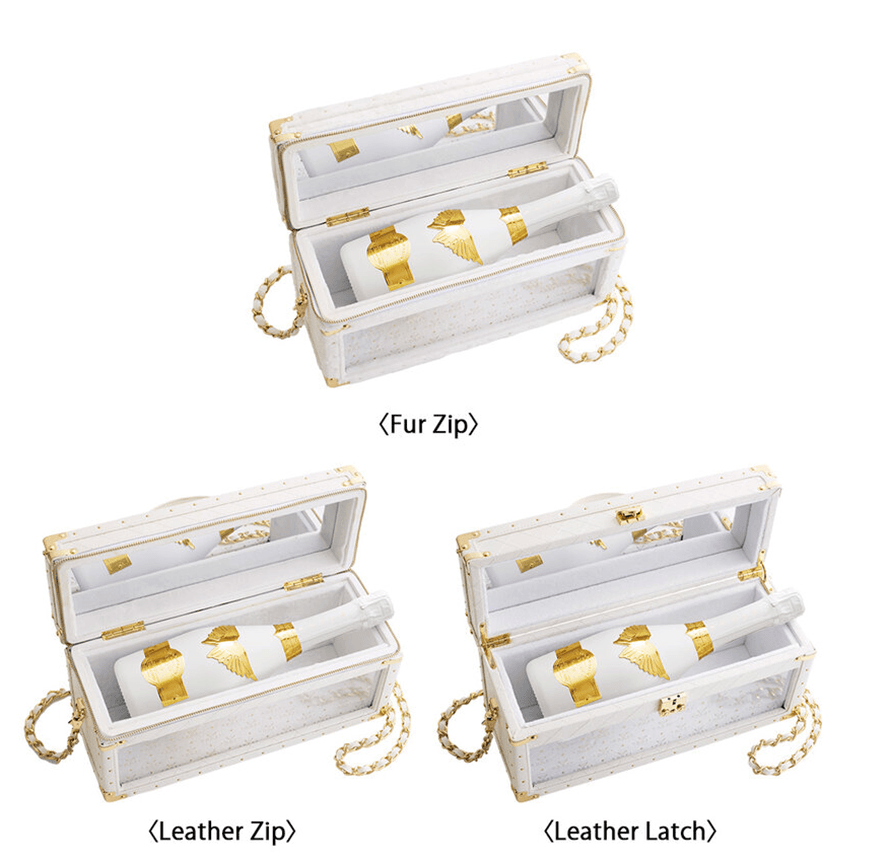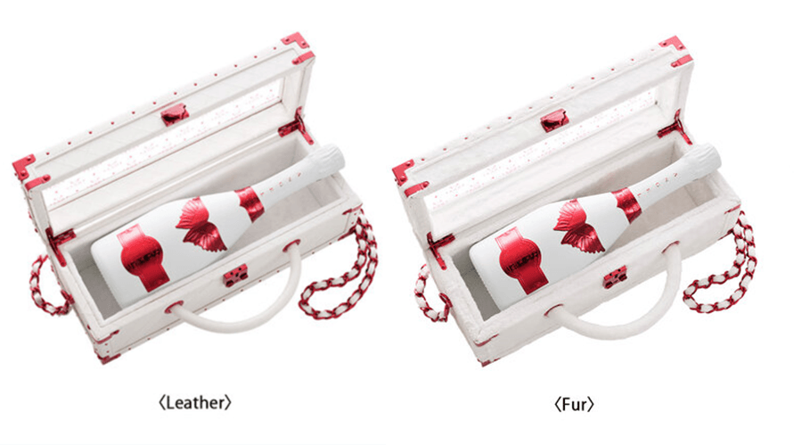 『Holiday Edition』は、NV Rose Whiteをベースにした限定コレクション。デザインはクリスマスをイメージしたラグジュアリー感のあるゴールド、レッド、グリーンの3色で展開。 肩掛けもできるベルトが付いたバニティタイプの特製BOX入りで、自分へのご褒美にはもちろん、恋人や友人、ご家族など大切な方へのギフトにも最適なシャンパーニュです。