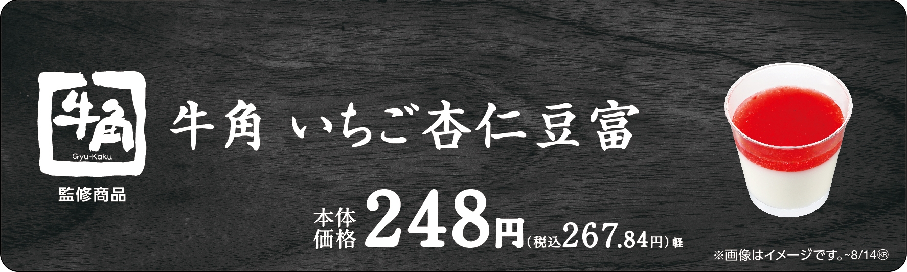 ●商品特長:牛角店舗の人気デザート「なめらか杏仁豆富 いちごソース」をイメージしました。北海道産純生クリーム入りの濃厚な杏仁豆富に果肉入りの苺ソースをトッピングしました。