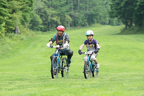 マウンテンバイクコースには、芝生の上を駆け降りる「グラスホッパー」や富士山麓ならではの溶岩地帯をクルージングする上級者も満足の「ダークボルケーノ」など多彩なコースが揃っています。