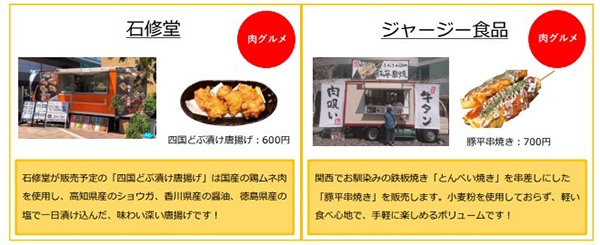 今回は、「どぶ漬け唐揚げ」などの肉グルメや「イカの姿焼き」などの海鮮グルメ、「肉ニラまんじゅう」などの中華グルメとバリエーション豊かな3ジャンルのグルメが外周3エリア(ミズノスクエア・甲子園駅前広場・OBAYASHI-SITE)に大集結!各外周エリアで味わえるグルメのジャンルが異なりますので、是非、外周3エリアを巡って絶品グルメをコンプリートしてください!