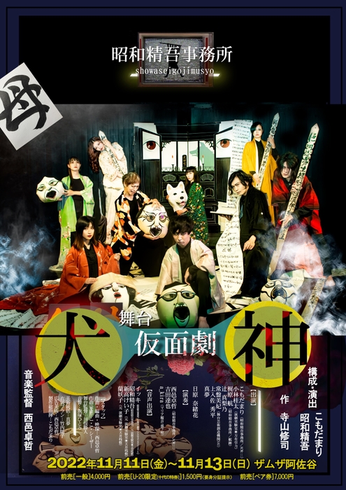 昭和精吾事務所(代表:こもだまり)主催、『仮面劇・犬神』が2022年11月11日 (金) ~2022年11月13日 (日)にザムザ阿佐ヶ谷(東京都杉並区阿佐谷北2丁目12-21 ラピュタビル B1F)にて上演されます。