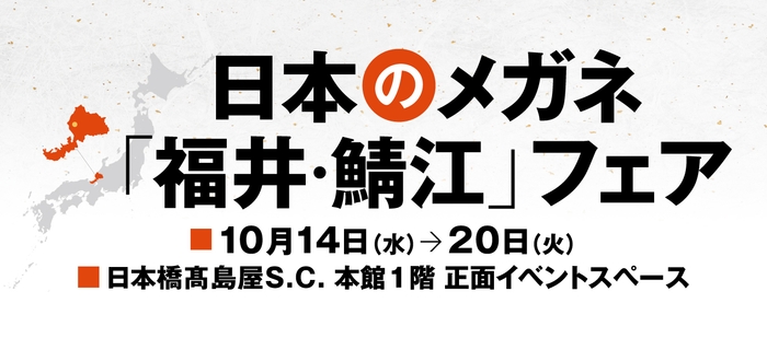 明治20年創業、今年で133年の歴史を持つ眼鏡店・株式会社金鳳堂(東京都港区、代表取締役社長:恒吉裕司)は、10月14日(水)→20日(火)・日本橋髙島屋S.C. 本館1階 正面イベントスペースにて、日本のメガネ「福井・鯖江」フェアを開催します。デザイナーや職人の熱い想いがつまった、かける人の魅力を最大限に引き出すメガネフレームを、この機会にぜひご試着ください。