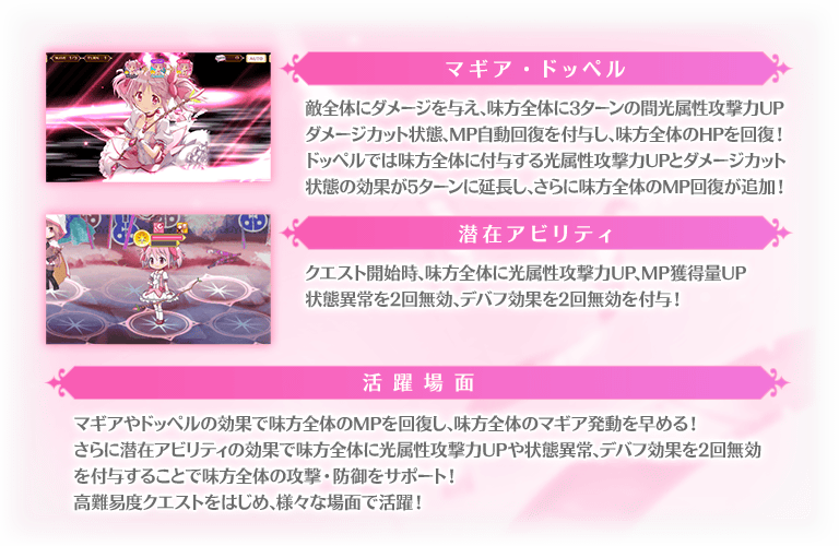 本ガチャより、新魔法少女「鹿目まどか scene0 ver.(CV.悠木碧)」と新メモリア「目覚めた心」「まどろむ小さなぬくもり」が期間限定で登場いたします。