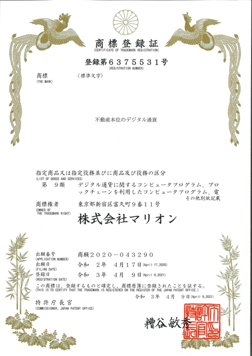 不動産賃貸関連サービスの株式会社マリオン(本社:東京都新宿区、代表取締役社長 福田敬司、以下、当社)は、この度、「不動産本位のデジタル通貨」並びに「不動産本位のスライドデジタル通貨」の商標を出願し、この度、登録が認められましたのでお知らせいたします。