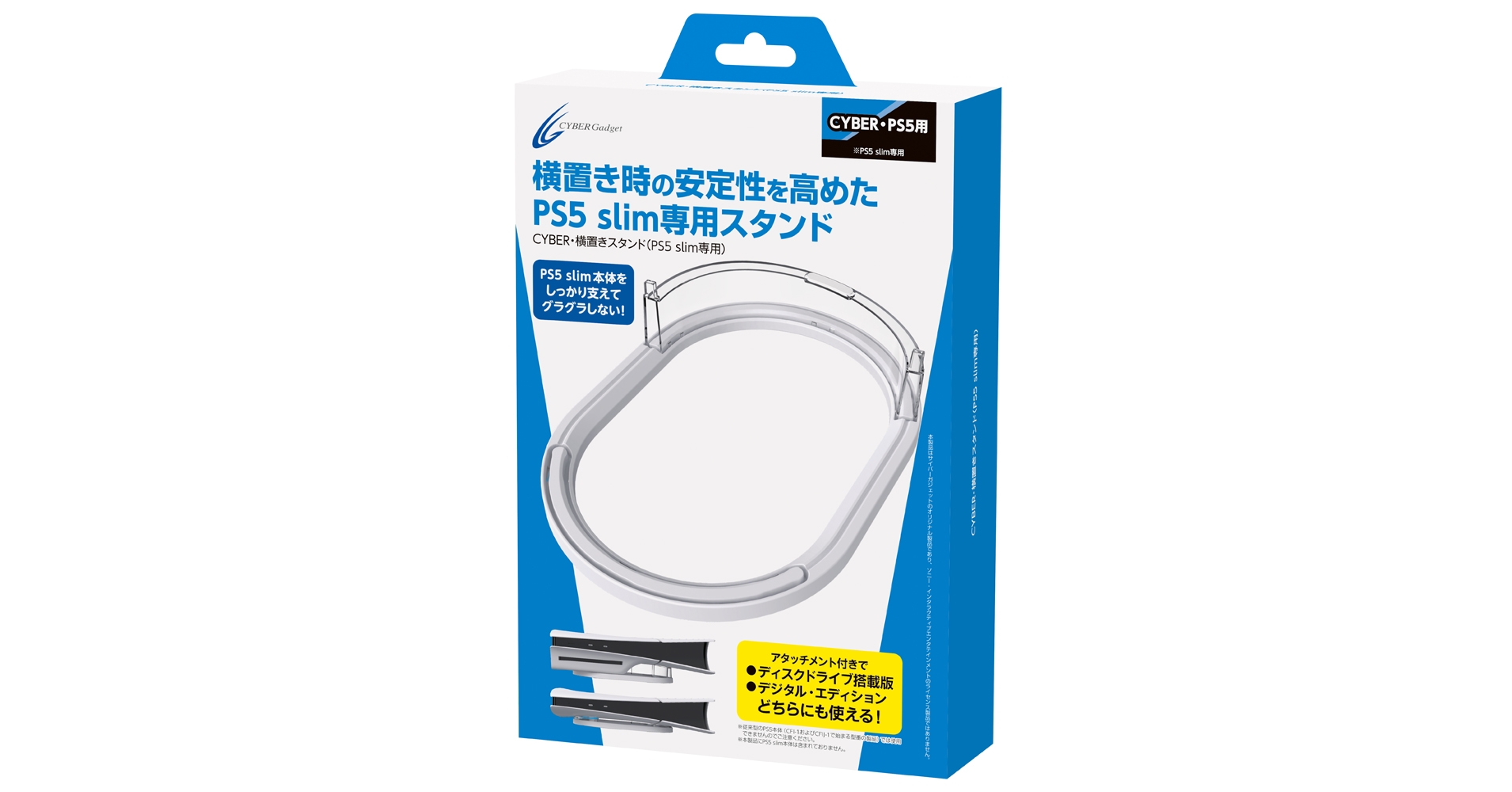 ・アタッチメント付属で、PS5 slim本体のディスクドライブ搭載版とデジタル・エディションの両方のモデルに対応