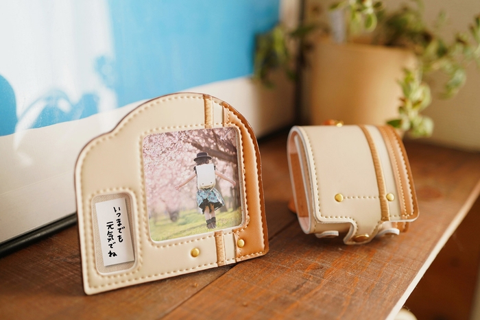■conosakiのリメイクサービスは、スタンド付きのミニランドセルと2つのフォトフレーム、メッセージカードをセットにした4点セット