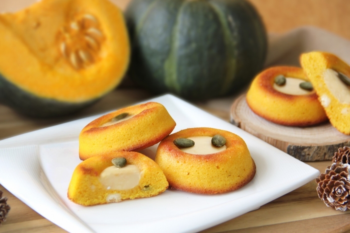 今回新しく登場するのは、かぼちゃの風味を存分にお楽しみいただける「ティグレ~かぼちゃ~」です。チョコレートに合うよう厳選したかぼちゃペーストとパウダーを練り込んだふわふわの生地は、一口食べるとかぼちゃの香りが豊かに広がります。中央には、GAKUこだわりのブレンドホワイトチョコレートにキャラメルをほんのり練り込んだ特製チョコレートを流し込み、食感のアクセントにかぼちゃの種をトッピングしました。かぼちゃの優しい甘さと、キャラメルの香ばしさが絶妙なハーモニーを奏でる、新しい秋のスイーツです。