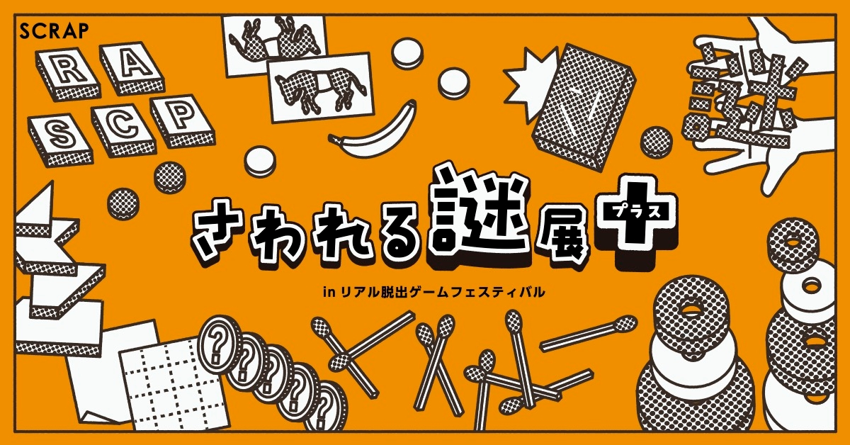 世界各地からあつめられた「さわれる謎」を、実際に手に取り触りながら解くことのできる「体験型の展覧会」。今回は2019年に開催された展示内容にリアル脱出ゲームフェスティバル限定の新規展示を追加してお届けします。“さわって”、“解いて”、“熱狂できる”「さわれる謎」の数々は、マッチ棒パズルやシルエットパズルのような名作パズルから、SCRAPオリジナル謎を含めて大小20点以上。どんどんさわって、ひらめきまくれ!