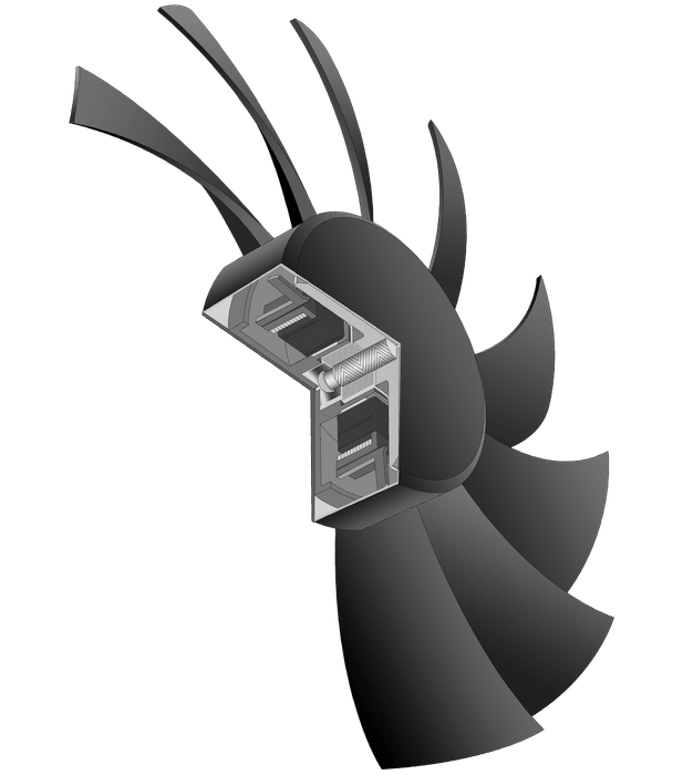 冷却ファンには、直径120mmの大径FDBファンを搭載。FDB(Fluid Dynamic Bearing)とは高性能流体軸受けのことで、ファンの軸内部にオイルなどの液体を注入することで、回転する軸の振動を抑えるようにしています。これによりボールベアリングファンよりも静かで発熱が抑えられるばかりか、軸内の液体によって摩擦を大幅に低下でき、省電力にも寄与します。
