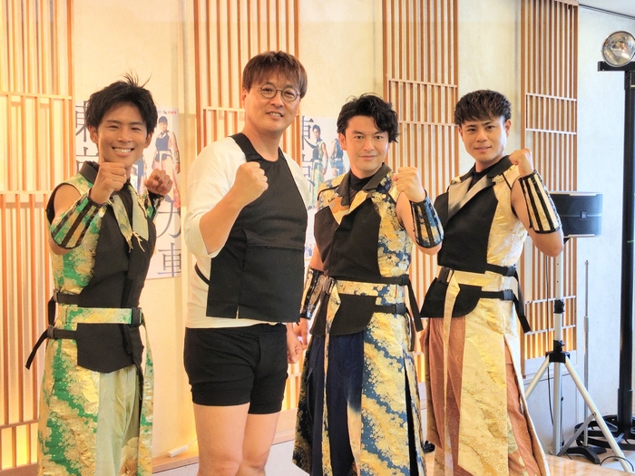 浅草で人力車を引っ張る現役俥夫から結成された 3 人組のパフォーマンスユニット・東京力車が8月20日、浅草ROXまつり湯にて、新曲「涙ひとしずく」(8月21日発売 作詞:酒井一圭、作曲:徳久広司、編曲:矢田部 正)の発売記念イベントを開催した。