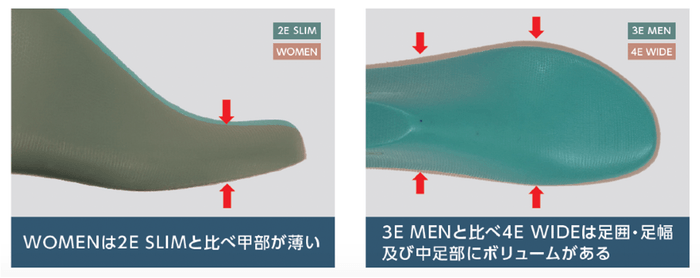 パフォーマンスを最大限に引き出すため、足に合ったタイプを選べるようMEN、WOMEN、WIDE、SLIMの4タイプで展開します。