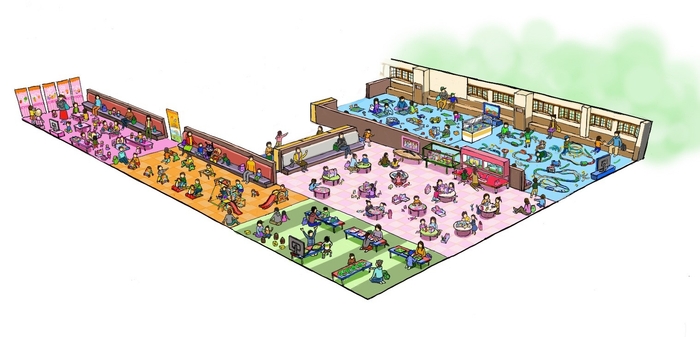 おもちゃ王国でも大人気の「メルちゃんのおへや」をはじめ、「ピノチオ館」「アクションゲームワールド」など5つのお部屋が登場!年齢や性別を問わず、夢中になって遊んでいただけます。また、縁日コーナーや手作りコーナーもあり、楽しい思い出とともにおみやげもお持ち帰りいただけます。