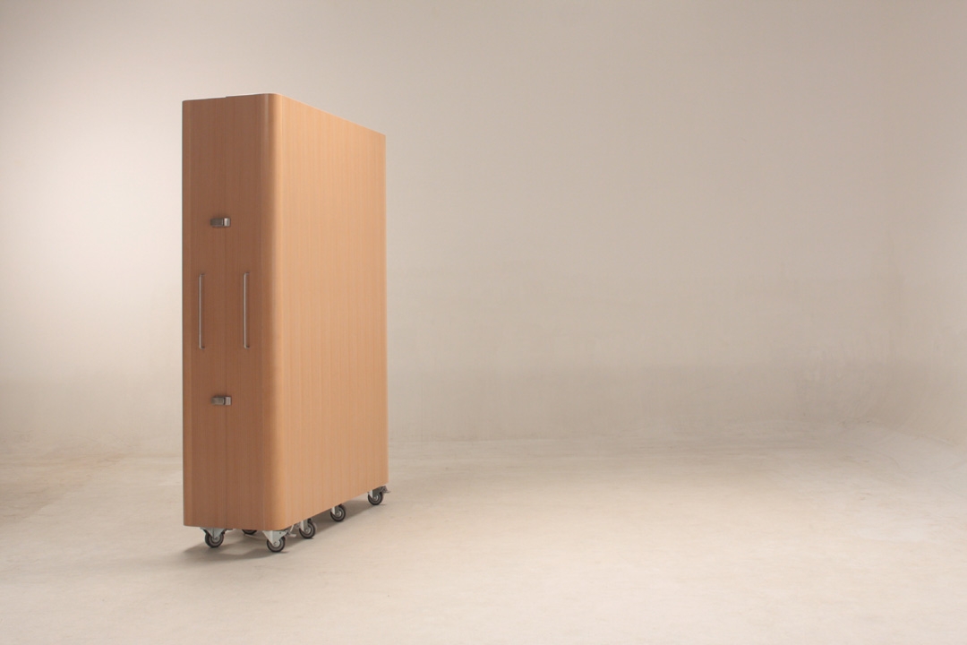 この建築家具シリーズの第一弾として、「モバイルキッチン」と「フォールダウェイゲストルーム」を提案します。「モバイルキッチン」は、クッキングヒーター、シンク、棚がコンパクトにまとまった可動式のキッチンで、鍋をする時やパーティー時などに使われ使われることを想定しています。「フォールダウェイゲストルーム」は、来客があった時にだけ、自由な場所に瞬時に組み立てられるゲストルームです。昨年発売しグッドデザイン賞を受賞した、自由にレイアウトできる家具「アルミハニカムファニチャー(AHF)」も、この建築家具シリーズのひとつとして位置づけられます。