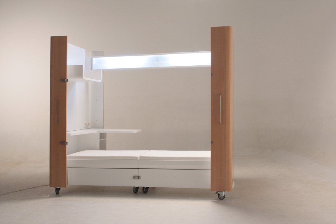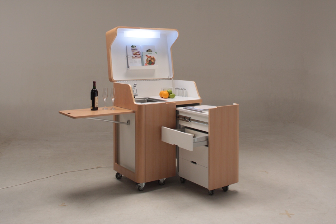 建築家具シリーズのコンセプトモデルの「モバイルキッチン」と「フォールダウェイゲストルーム」は、6月27、28に開催する建築金物総合見本市【エスタ2008】にて展示し、発表いたします。