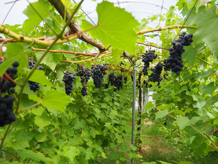 岡山県のみに自生する野生種の「シラガブドウ」と、マスカット・オブ・アレキサンドリアを交雑したワイン用ブドウで、岡山理科大学などが農林水産省に新品種登録を申請している「マスカットシラガイ」を使ったワインの仕込み作業が9月17日、同大学ワイン発酵科学センターで始まりました。