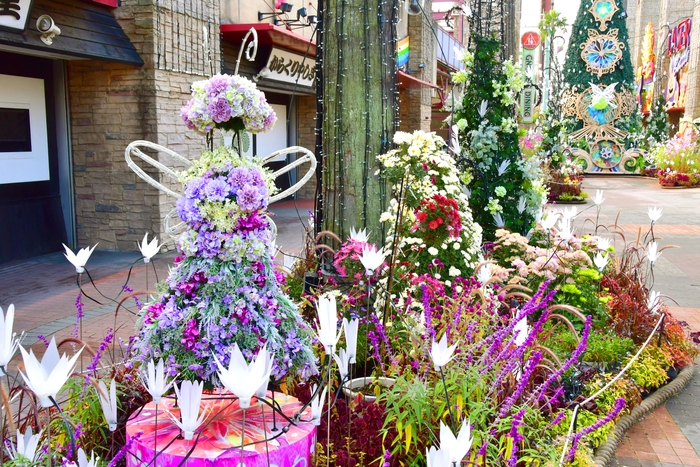 園内の花と緑を管理している「ガーデニングチーム」のスタッフが花の装飾を担当。イルミネーションと花の競演により、エリアの景色を昼間も楽しむことができます。