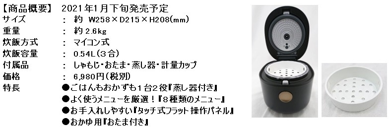 株式会社ヤマダホールディングスは2021年1月下旬以降順次、マイコンジャー炊飯器2機種を全国のヤマダデンキ店頭(一部店舗を除く)、および当社インターネットショップ(ヤマダウェブコム)にて販売を開始致します。