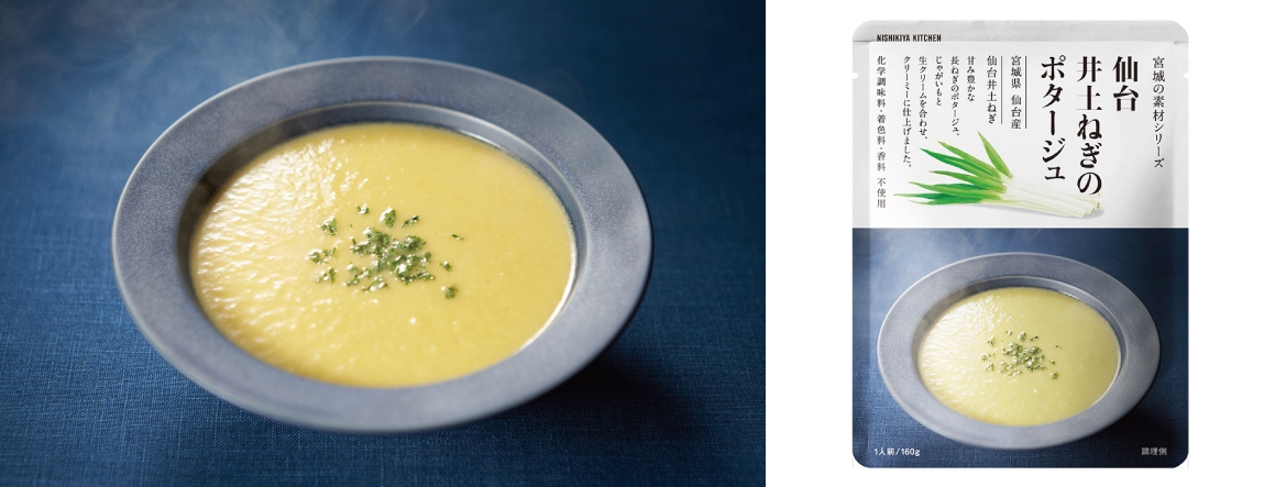 NISHIKIYA KITCHEN(ニシキヤキッチン)(株式会社にしき食品 本社:宮城県岩沼市、代表取締役:菊池 洋)は、2024年1月11日(木)より、宮城県仙台市の沿岸部・井土地区の仙台井土ねぎを使用した「仙台井土ねぎのポタージュ」を数量限定で発売いたします。