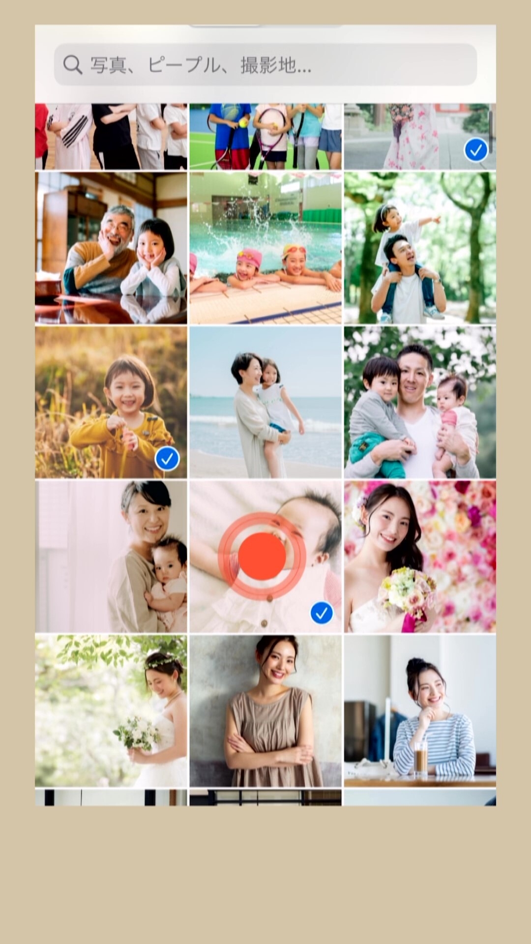フォルダを選択後に写真追加ボタンをタップすることで、1度に複数の候補写真を選んでアップロードすることができます。