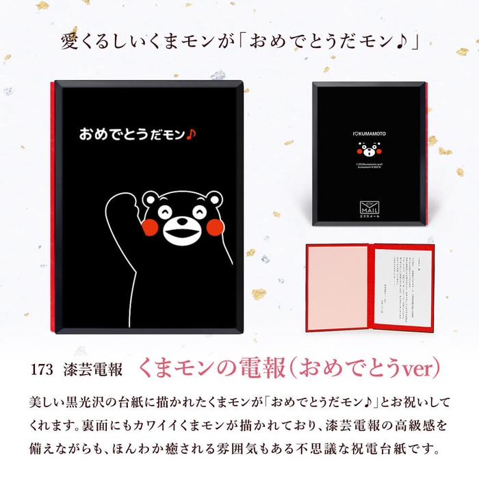 商品名:173 漆芸電報 くまモンの電報(おめでとうver)