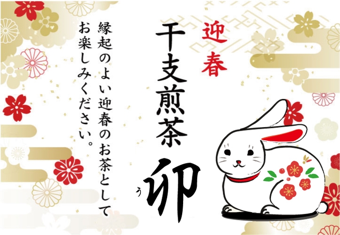 今年の干支「卯」の文字は、双葉が開いて成長し、盛んに茂る姿の象形文字がルーツともされています。双葉が開くように、新しい芽生えを期待したいとの思いを込めてお作りした、縁起の良い干支煎茶をお届けいたします。どうぞ新年も心豊かな佳き日々をお過ごしください。
