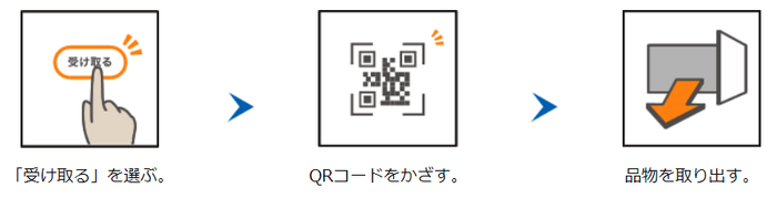 当社のWebサイトや店頭で、顧客が商品を注文した際に付与されるQRコードをロッカーに読み取らせることで、商品を受け取ることができます。