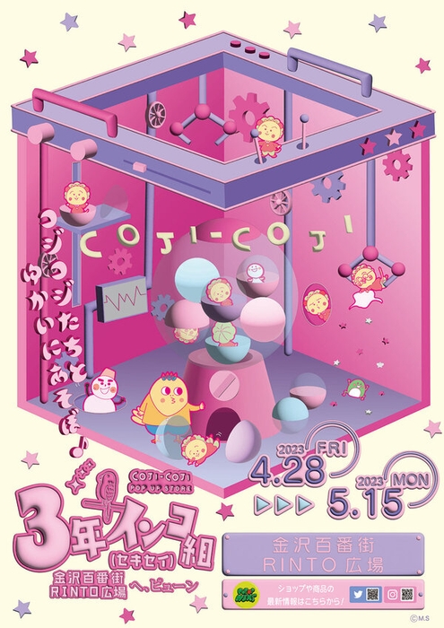 『コジコジ』の期間限定ショップ「コジコジポップアップストア 3年インコ組(セキセイ)」を、2023年4月28日(金)~2023年5月15日(月)の期間、金沢百番街で開催いたします。