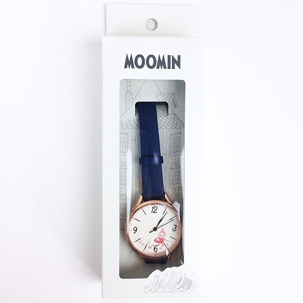 ピンクゴールドのケースとリトルミイの描かれたムーブメントが、カジュアルな中にも女性らしさを感じさせてくれます。