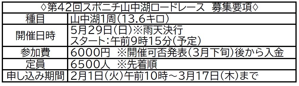 【締め切り迫る】第42回スポニチ山中湖ロードレース