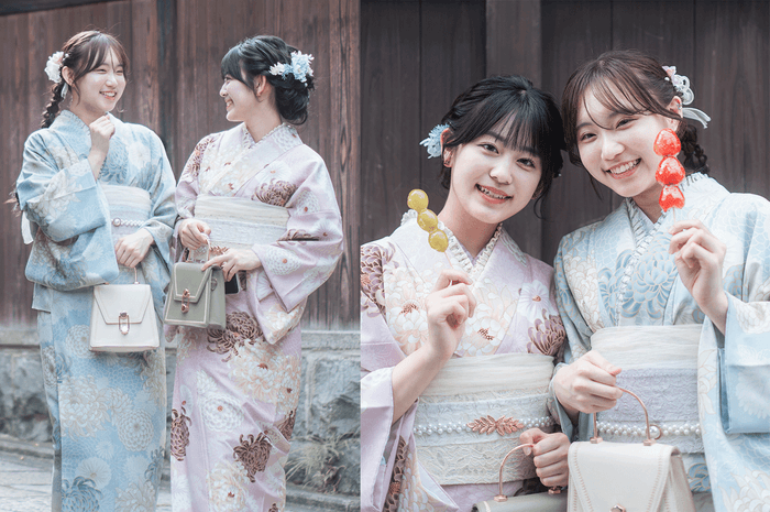 新作着物が含まれるスタンダードプランは、事前予約で4,180円から利用できる大変お得なプランです。この料金には、肌着・着付け小物をはじめ、カバン、草履も含まれており、追加料金を心配せずに着物体験を楽しむことが可能です。コストパフォーマンスに優れた価格設定でありながら、品質やデザインにも妥協せず、より多くの方が京都の街で気軽に着物を楽しめるサービスとなっています。