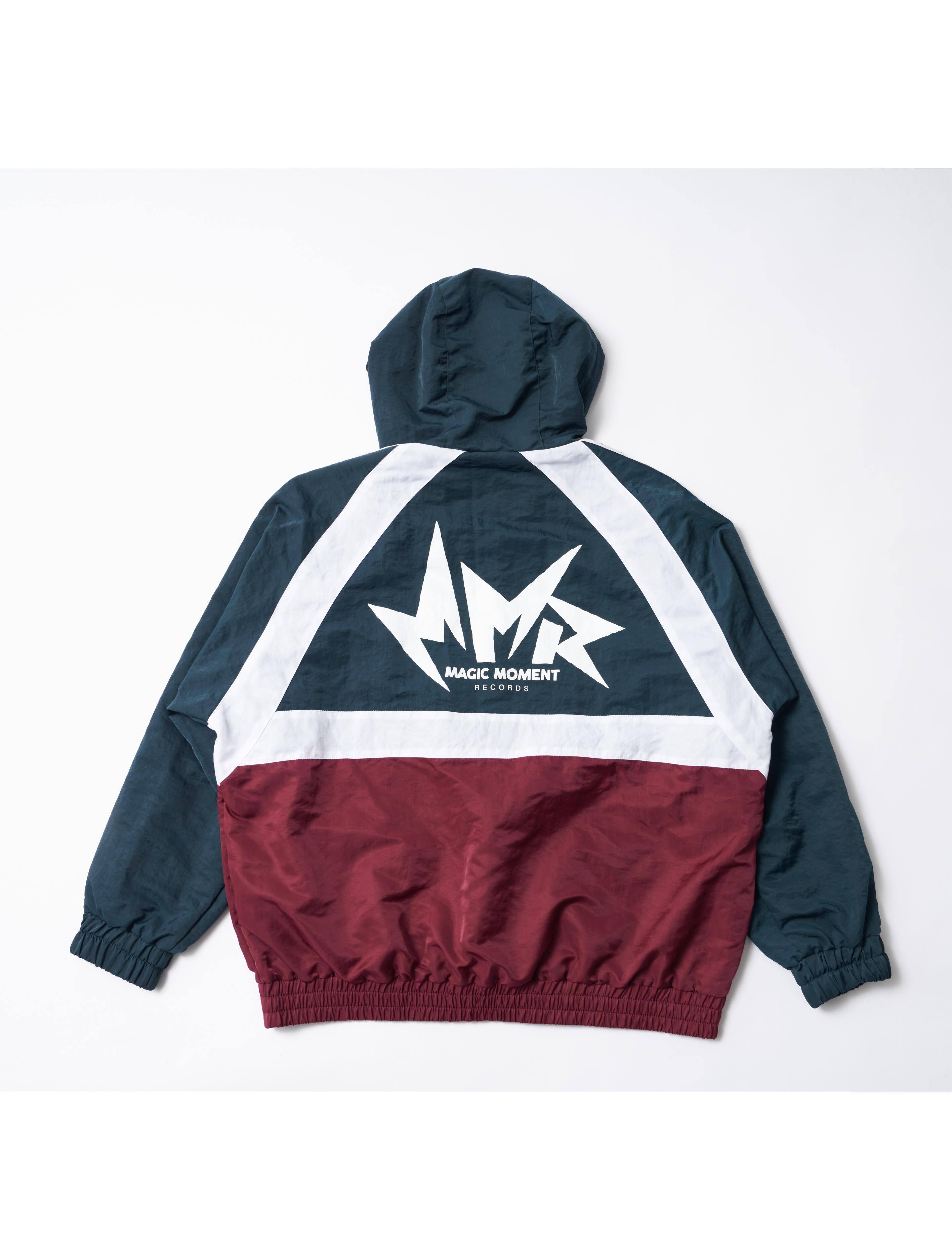 両肩のジャガードテープのラインは男女が背中合わせに座ったシルエットの「OMINI(オミニ)」ロゴと「MMR(=MAGIC MOMENT RECORDS)」ロゴが交互になったオリジナルのデザイン。