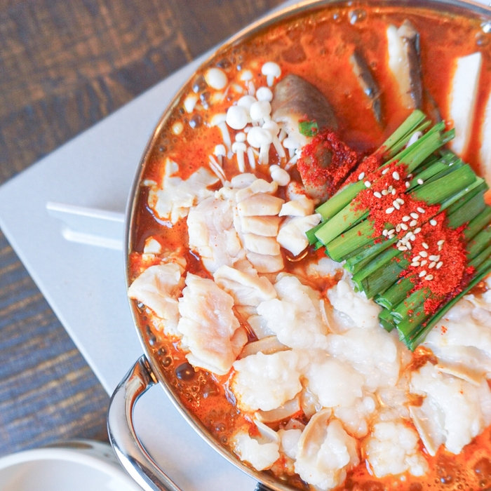 ナグォンチャン室町のみでご提供している「コプチャンチョンゴル」は、韓国語でホルモンを意味する「コプチャン」と鍋料理を意味する「チョンゴル」が合わさった韓国式のホルモン鍋です。